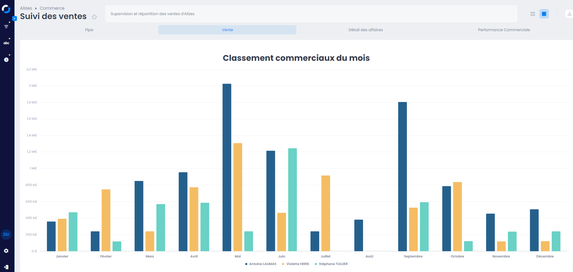 Désormais, en plus de la comparaison habituelle par rapport à la période précédente (N-1), vous pouvez également comparer votre KPI à un objectif prédéfini (par exemple : le volume des ventes). Cela vous permet en un clin d’œil de déterminer si vous êtes aligné avec votre objectif et de suivre votre évolution par rapport à la période précédente. Cette double comparaison des indicateurs simplifie ainsi le processus d’analyse et vous permet de prendre des décisions mieux éclairées.