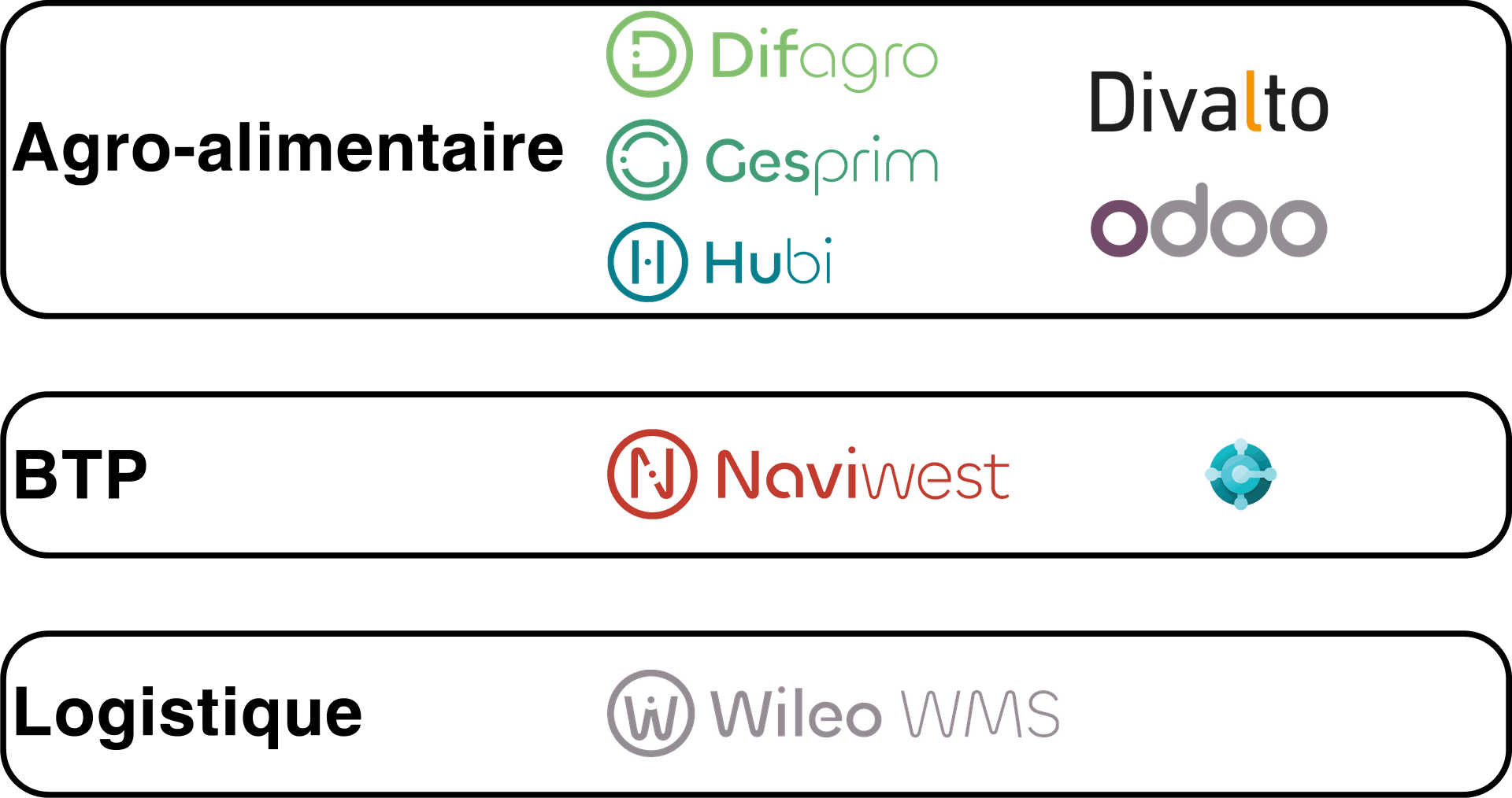Nous en avons fait des marques comme Difagro sur Divalto, Naviwest sur Dynamics Business Central, Wileo wms pour notre WMS (logiciel propriétaire), Hubi et Gesprim sur Odoo.